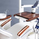 Het spittoongedeelte en de instrumententray zijn opvallend in hun mahoniehouten look.