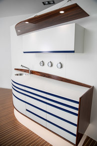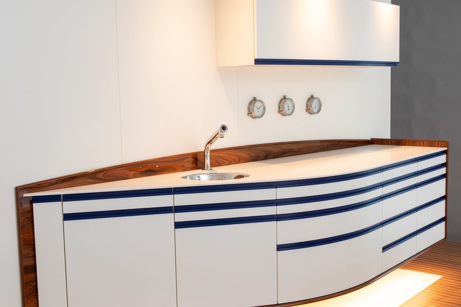 Geïnspireerd door de esthetiek van het Italiaanse design, dat ook in het jachtontwerp de norm heeft gesteld, hebben wij een behandeleenheid en een bijpassend meubelsysteem ontworpen, waarin de elegante lijnen van dit ontwerp terug zijn te zien.