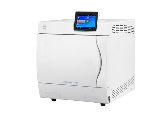 Melag is een gevestigde naam op het gebied van sterilisatie. Zo is er de Vacuklav 41B+ (35 cm kamer) en de Vacuklav 43B+ (45 cm kamer), welke korte procestijden biedt vanwege een dubbele sterilisatie wand constructie. Tevens beschikt deze klasse B sterilisator over enorm bediengemak en is het mogelijk, om naast de stand-alone functionaliteit, een demi-watervoorziening te bestellen.