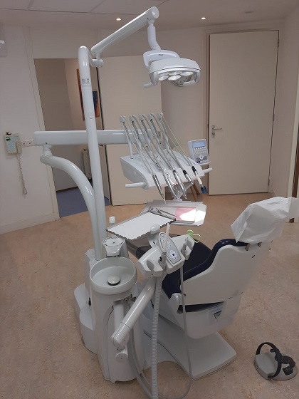 Assistent element, in hoogte verstelbaar met speeksel- & spraynevelzuigslang