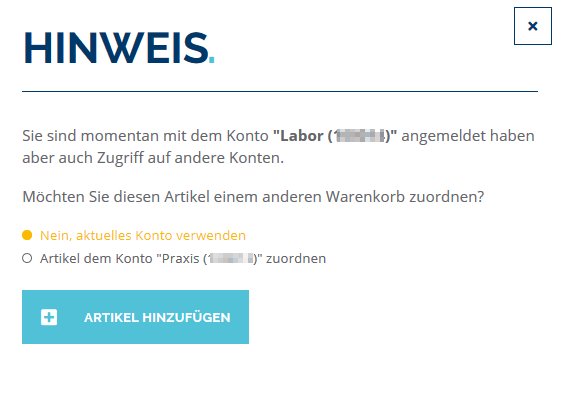 Als u zich aanmeldt bij de webshop van dental bauer en toegang hebt tot meerdere accounts, is de eerste stap om het account te selecteren dat u wilt gebruiken.