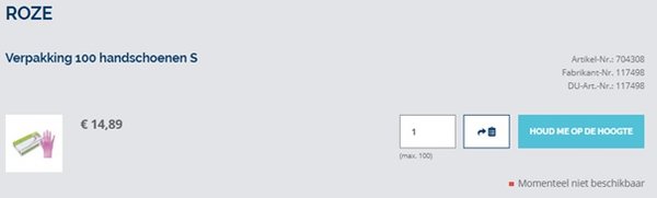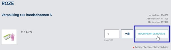 Als een artikel niet besteld kan worden of tijdelijk niet leverbaar is, staat er in plaats van de winkelwagen knop, de knop "Houd me op de hoogte".