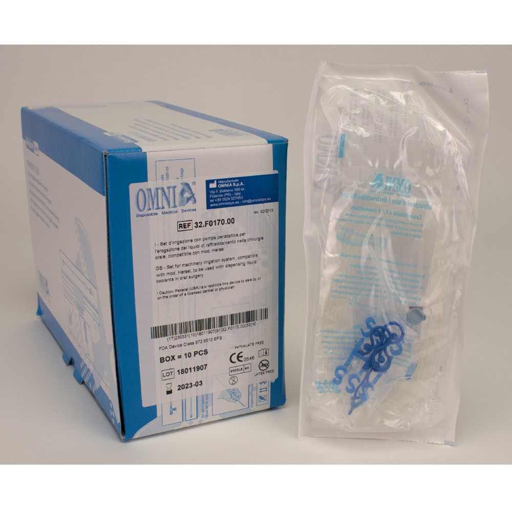 Vereinbar mit: Bien Air-Hersel, Chiropro 980 / PIEZON® MASTER surgery/ Piezosurgery II / Surgisonic I / UBS- Ultrasonic bone surgery/ Surgybone - Acrobone - Easybone Silfradent Omnia bietet ein großes Sortiment an mechanischen Irrigationslinien an, das speziell für den Großteil der handelsüblichen Physiodispenser zusammengestellt wurde. Die Irrigationssysteme sind komplett mit Locher, Rolle oder Klammer für die Flusskontrolle sowie mit Anschlussstücken und integrierter Peristaltikpumpe. Die mechanischen Irrigationssysteme von OMNIA sehen folgende Optionen vor: a. Monoirrigation innen b. Monoirrigation außen c. Innen- und Außenirrigation Das praktische Endstück erleichtert das Anschließen der Irrigationsleitung an das Handstück und erlaubt das Verbinden unserer Schläuchen mit allen Nadeln zum Kühlen der verschiedenen Handstücke, die häufig unterschiedliche Durchmesser haben.