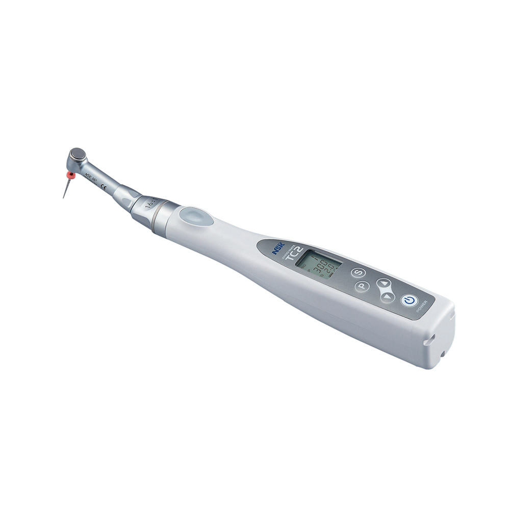Slimmer en veiliger: kabelloos endodontisch handstuk met draaimomentcontrole en auto-reverse-functie. Smalle mini-kop en hals garanderen optimaal zicht. Groot Lcd-display en gebruikersvriendelijke toetsen. Licht, ergonomisch ontwerp. Intelligente autoreverse- en alarmfunctie. 5 voorinstellingen voor diverse programma’s. De laatste programma-instelling wordt opgeslagen bij uitschakeling van het apparaat. Snelle oplading in 90 minuten (zonder contact).