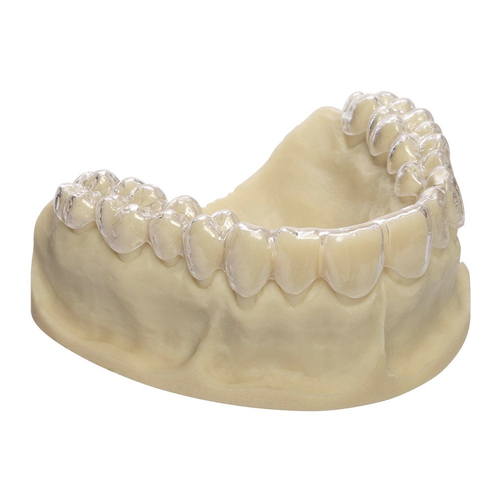 Thermovormfolie incl. isolerende folie voor verbeterde esthetiek voor de vervaardiging van harde occlusale spalken, een basis voor occlusale spalken, een basis voor orthodontische hulpmiddelen. Zeer transparant, taai-elastisch en hecht met acrylaat. In een aluminium zakje.