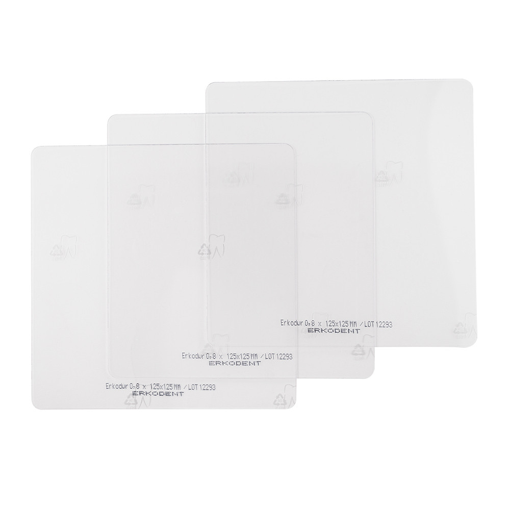 Plaat hoeft niet voorgedroogd te worden. Isolerende onderlaagfolie is al op de folie aangebracht. Stevige folie. Hecht met acrylaat. Toepassingsgebied: Miniplast spalken, beetspalken, cast copings, implantaatspalken, crunch spalken, Michigan spalken, verbandplaten, retainers.