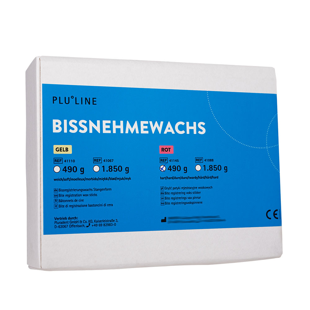 Bijtregistratiewas in staafjes is geschikt voor het maken van volledige en gedeeltelijke beetsjablonen en voor het plaatsen op modelgegoten zadels. Bij verhitting is het zo sterk als bijenwas en bij afkoeling absoluut maatvast. Zo is een exacte beetregulatie mogelijk. Afmetingen: 10 x 10 x 100 mm