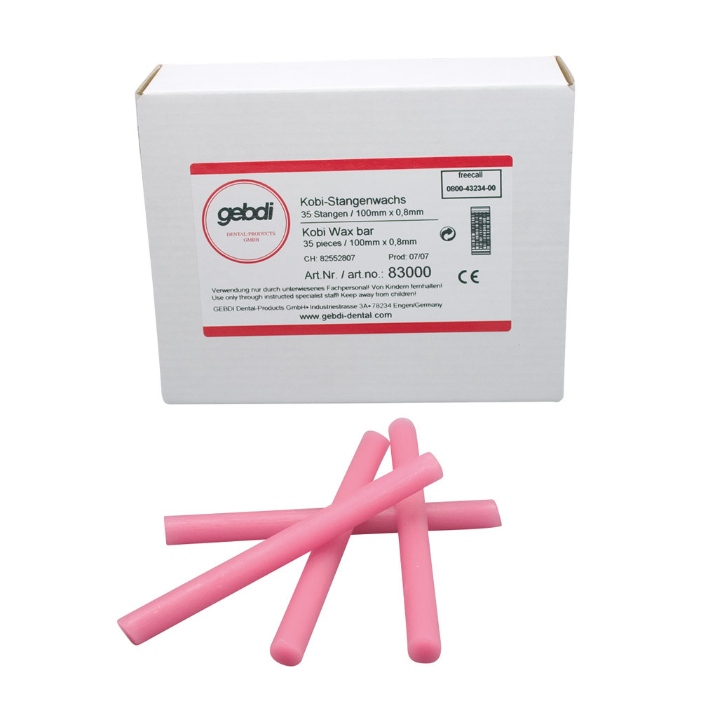 Kobi-stangenwas voor de constructiebeet in de kaakorthopedie Geschikt voor alle bimaxilaire apparatuur. 37°C Verwerkingstemperatuur. Ontwikkeld en beproefd in de kaakorthopediepraktijk.
