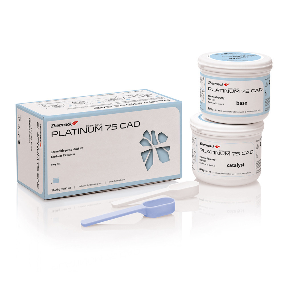 Platinum 75 CAD zeichnet sich durch seine hervorragende Dimensionsstabilität, kurze Verarbeitungszeit und einfache Anwendung aus. Es hat eine hohe Zeichnungsschärfe und ist wärmebeständig bis 200°C, so dass es ebenfalls mit thermoplatischen Materialien verwendet werden kann. Platinum 75 CAD lässt sich leicht Bearbeiten und ist zudem scannbar ohne Scanspray.