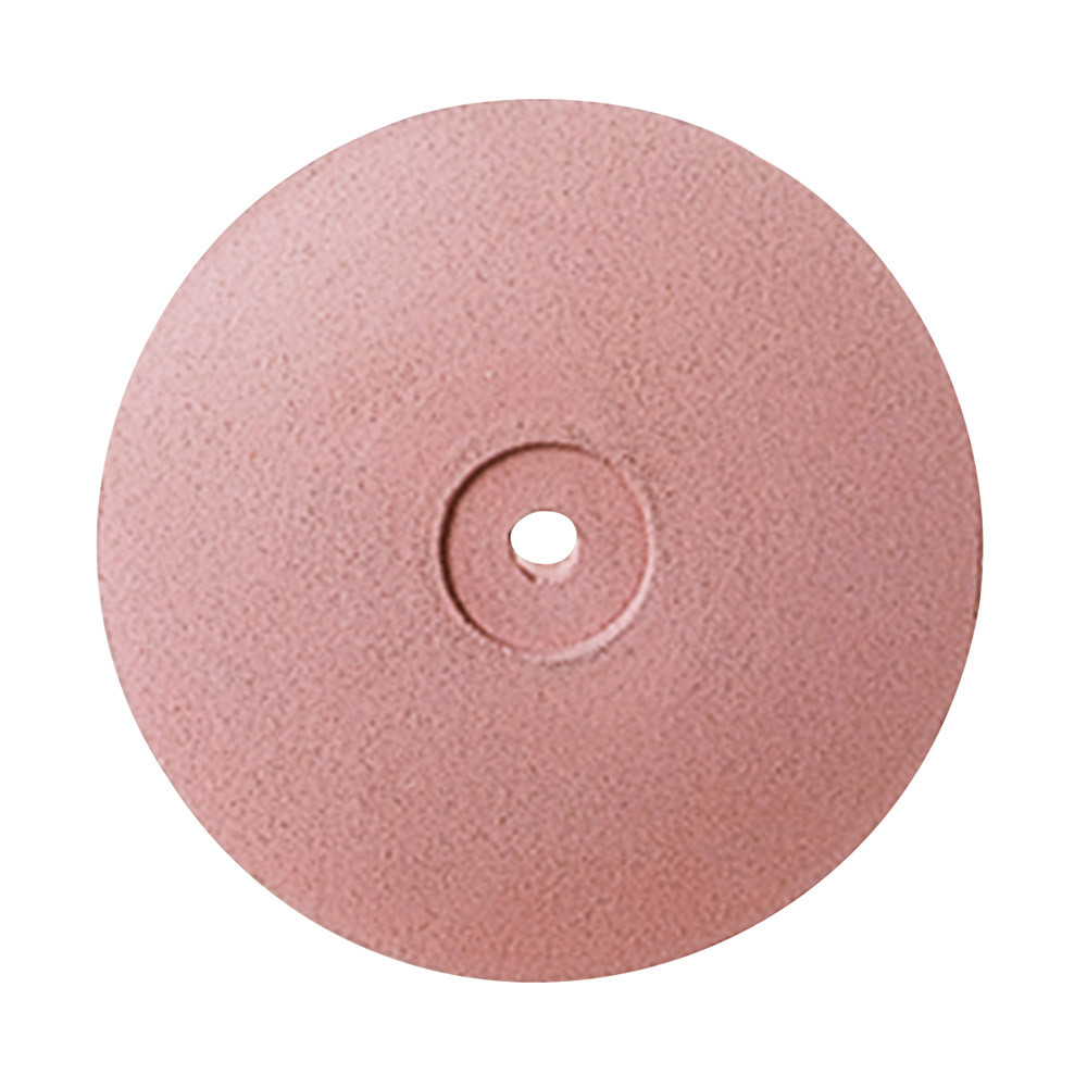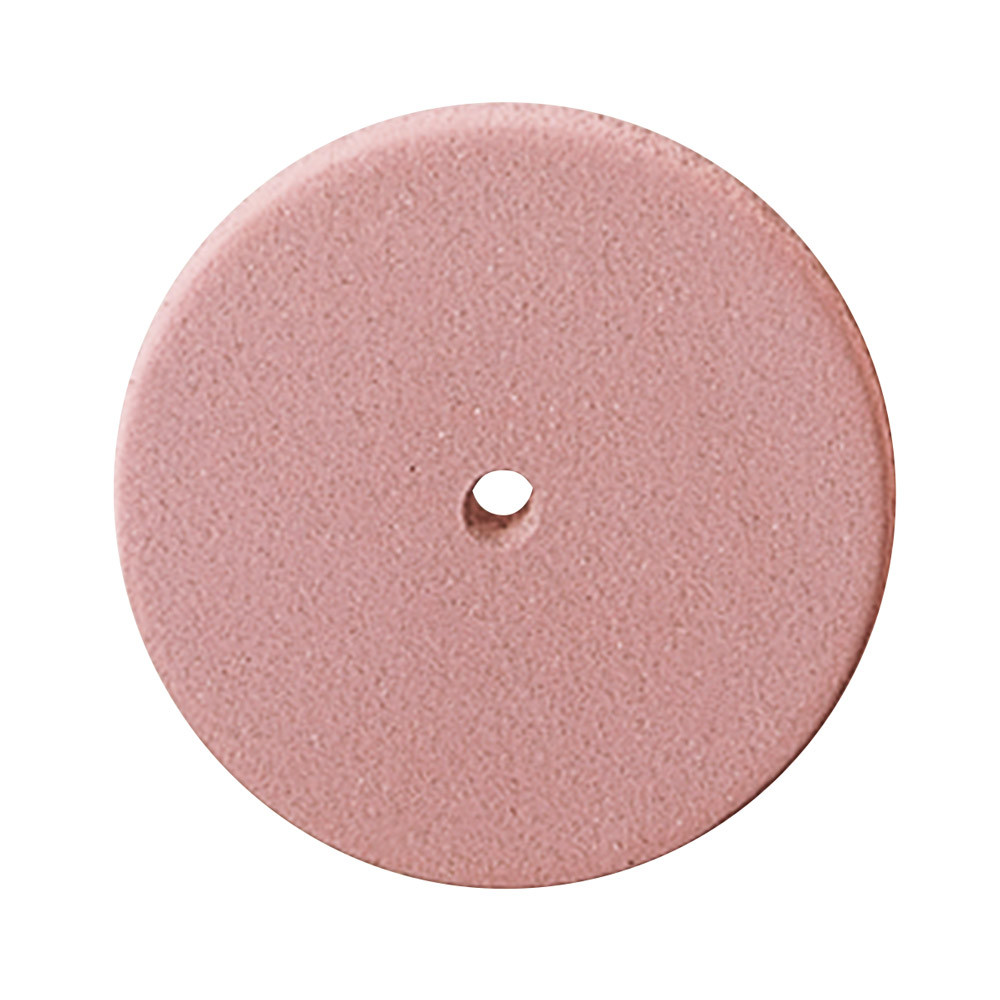 Grijs: abrasieve eerste polijsting (20.000 r/pm). Roze: medium korrelgrootte (10.000 r/pm).