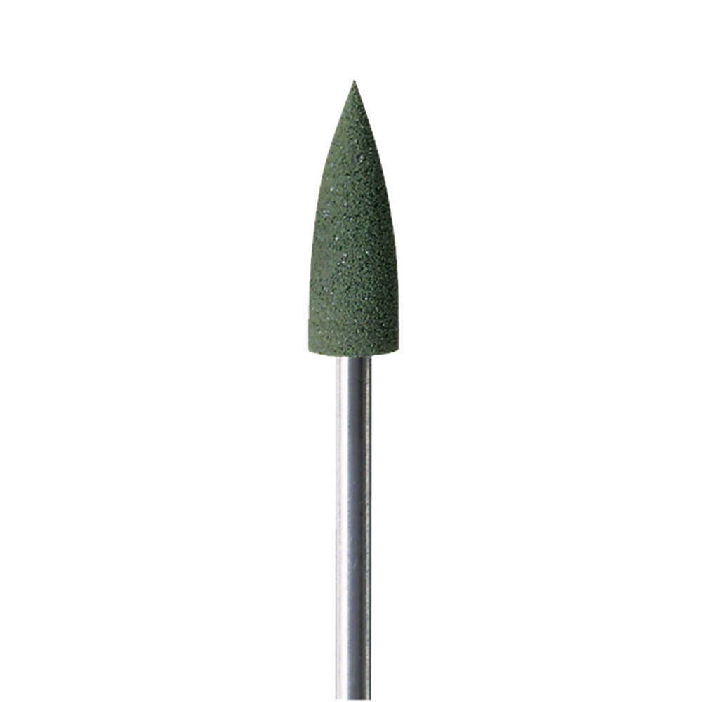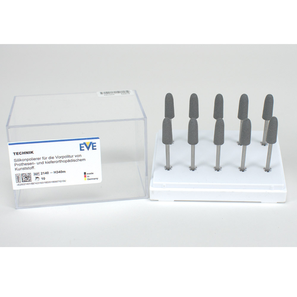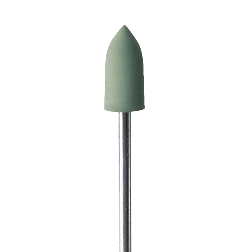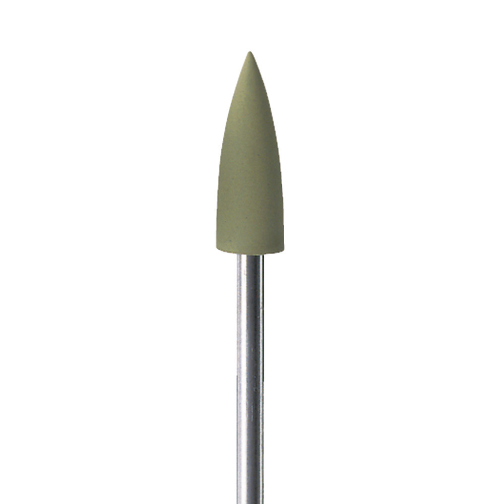 Gemonteerde siliconenpolijster voor verwijderen, gladmaken en hoogglanspolijsten van kunstgebitten en orthodontische kunststoffen. Snelheid: 5.000 - 7.000 tpm.