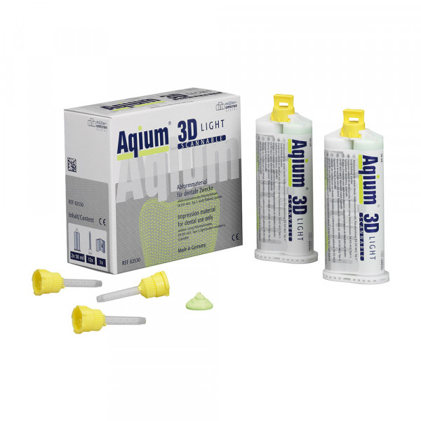 Aqium 3D LIGHT beschikt over een excellente, meteen te gebruiken hydrophilie, die de aanwezige vochtigheid verdringt en het materiaal tot in de kleinste details laat vloeien, met een simultane hoge treksterkte en elasticiteit.