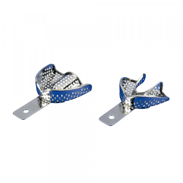 Geperforeerde afdruklepels voor pediatrische tandheelkunde.