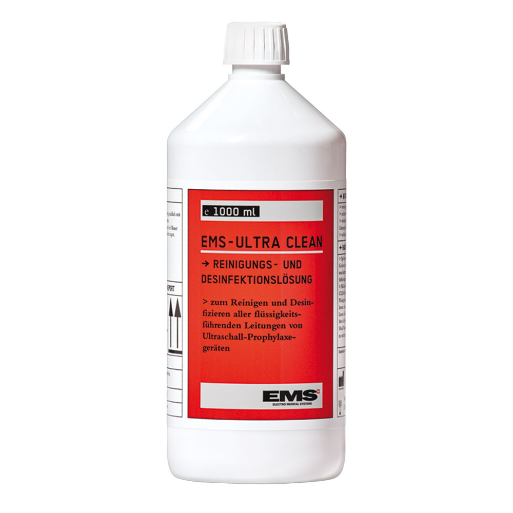 Reinigende en desinfecterende oplossing voor echo-profylaxeapparaten.Spoel uw Piezon Master 600 of miniMaster één keer per dag met de speciale oplossing EMS Ultra Clean uit. Het product biedt optimale bescherming voor de patiënt en het apparaat. Het reduceert effectief de biofilm in de leidingen waar vloeistof doorheen loopt, aangezien Ultra Clean effectief is tegen bacteriën, virussen, schimmels en gisten. Bovendien voorkomt het ook het broos worden van de apparatuurslangen. Maakt kalk en algen los en verwijdert deze. Desinfecteert slangen. Handhaaft de functionaliteit. Voorkomt door dagelijks spoelen deposito's of mogelijke chemische reacties van de spoelvloeistof in de leidingen waar vloeistof doorheen stroomt.