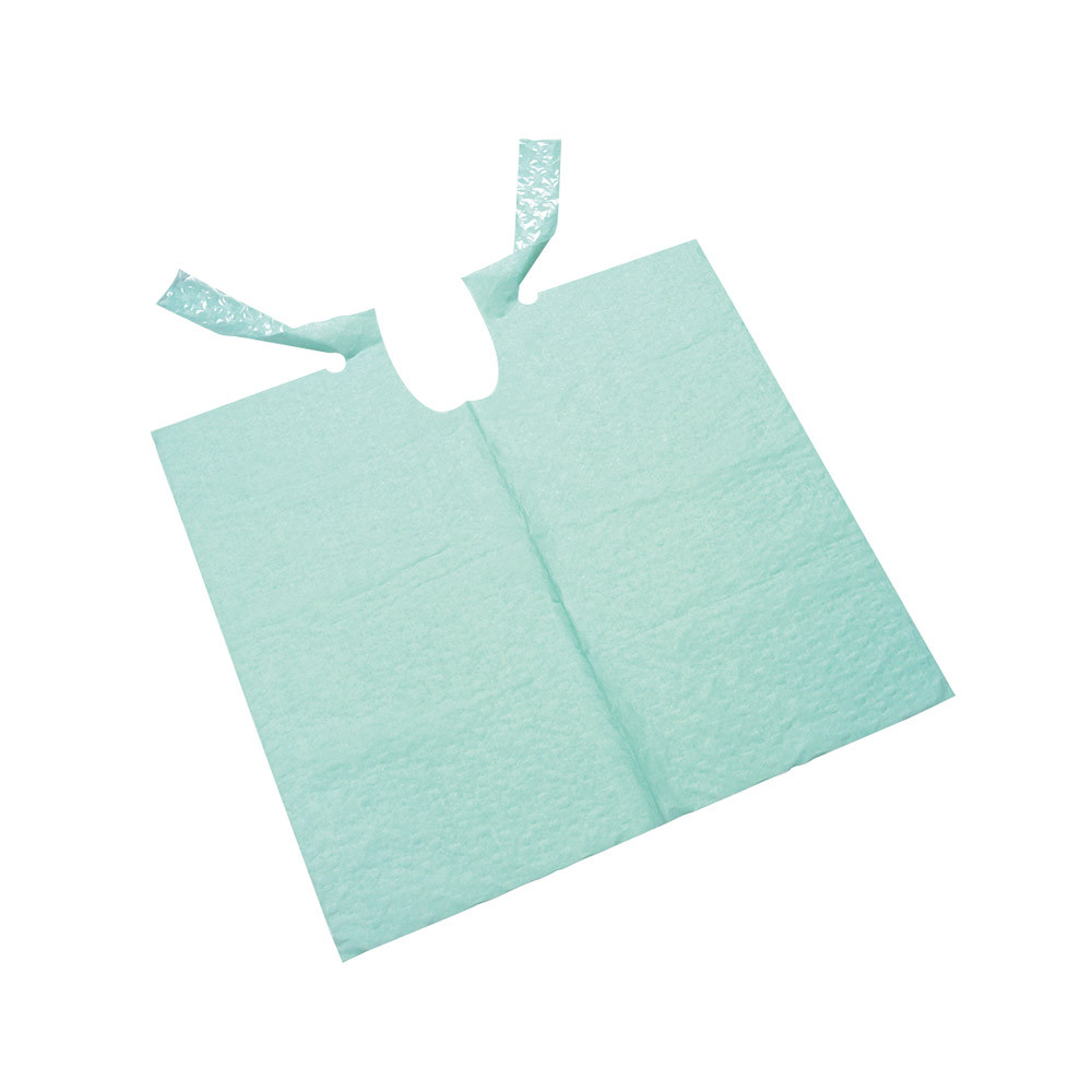 PE-folie voorzien van een absorberende cellulose coating met afscheurperforatie op de rol, extra breed. Optimale bescherming van de kleding van de patiënt. Afmeting 60 x 60 cm.