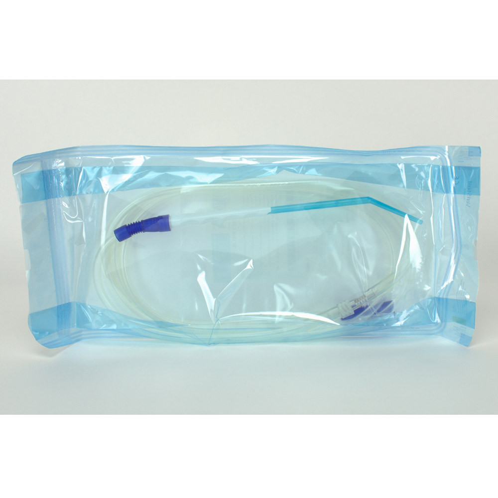 Der Absaugschlauch (2,20 m) mit Yankauer-Kanüle ist bei allen chirurgischen Eingriffen angezeigt, bei denen ein präzises Absaugen ohne Einschränkung der Sicht auf den Operationsbereich erforderlich ist. Die besonderen kranzförmig an der Kanülenspitze angeordneten Düsen verhindern das unabsichtliche Ansaugen kleiner Gewebeteile bei Eingriffen der plastischen Zahnfleischchirurgie. Der Sauger besteht aus PVC Medical Grade und ist transparent, um das Absorbieren des OP-Lampenlichts und eine Verdunklung des Operationsbereichs zu verhindern. Der Absaugschlauch wird serienmäßig mit umknickgeschützten Anschlussstücken und mit Ansatz für Knochenfilter zur Gewinnung autologen Knochenmaterials angeboten.