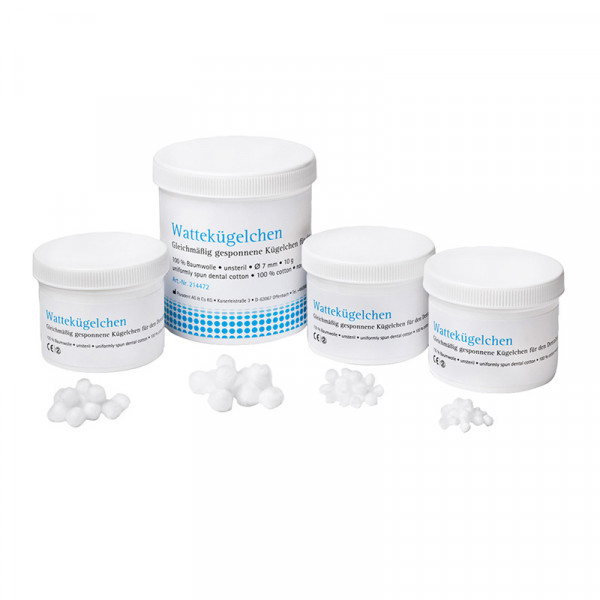 Gelijkmatig gesponnen wattenbolletjes voor het drogen van gaatjes en het aanbrengen van medicatie. Niet-steriel