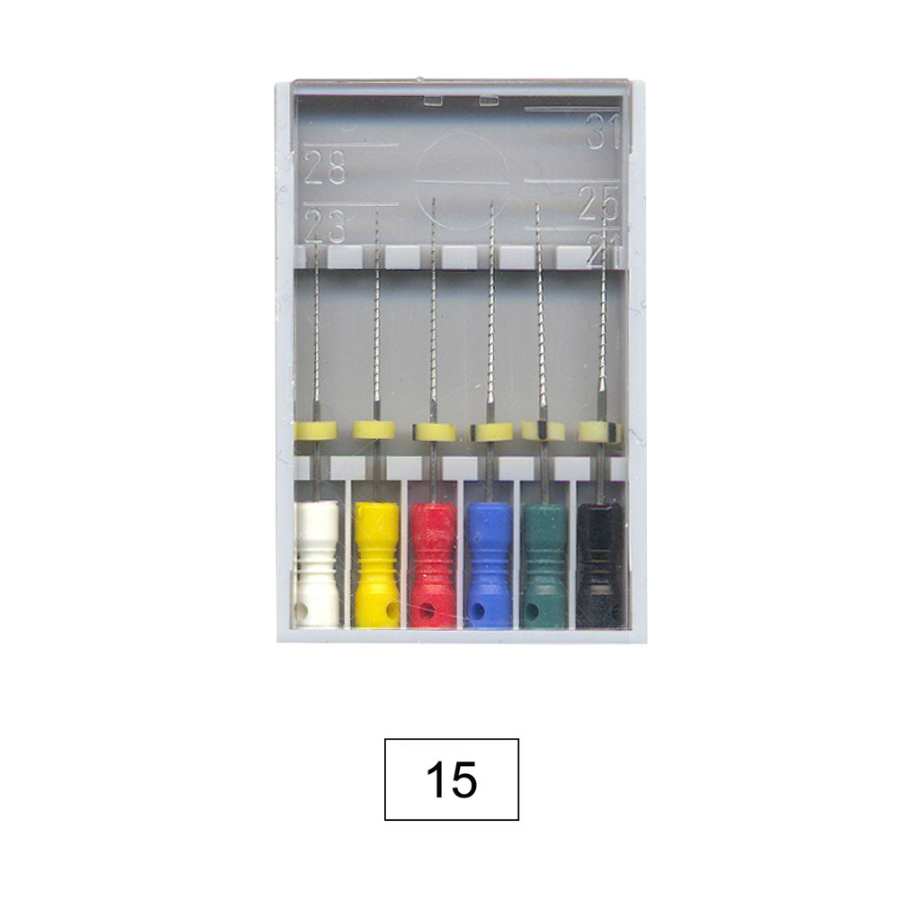 Reprocessing instrumenten met hoge flexibiliteit en snijprestaties voor endodontie. Alle instrumenten hebben niet-snijdende tips (atraumatische tips). De hoge flexibiliteit biedt maximale veerkracht en veiligheid. Handmatig prepareren: Duwen en trekken zonder het instrument te verdraaien.