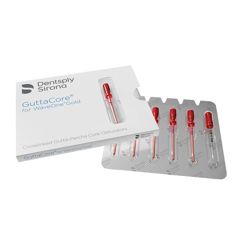 Zo gemakkelijk als een koude gutta-percha stift, zo veilig als een warme vulling. GuttaCore obturators hebben een kern van vernet gutta-percha bedekt met thermoplastische, vloeibaar gutta-percha die de natuurlijke anatomie van het kanaal driedimensionaal vult. De voordelen: - Efficiënte en eenvoudige techniek met slechts één obturator verkort de behandeltijd. - Vloeibaarheid van verwarmde gutta-percha voor een volledige vulling van het kanaalsysteem. - De zekerheid dat GuttaCore betrouwbaar gebieden vult waar conventionele koude gutta-percha niet kan komen. Nu beschikbaar om aan te sluiten bij uw preparatie met WaveOne Gold. Gemakkelijke toewijzing van de juiste obturator dankzij kleurcodering vergelijkbaar met de vijlen.