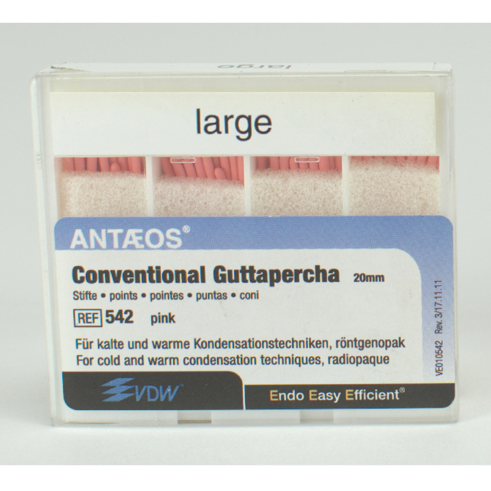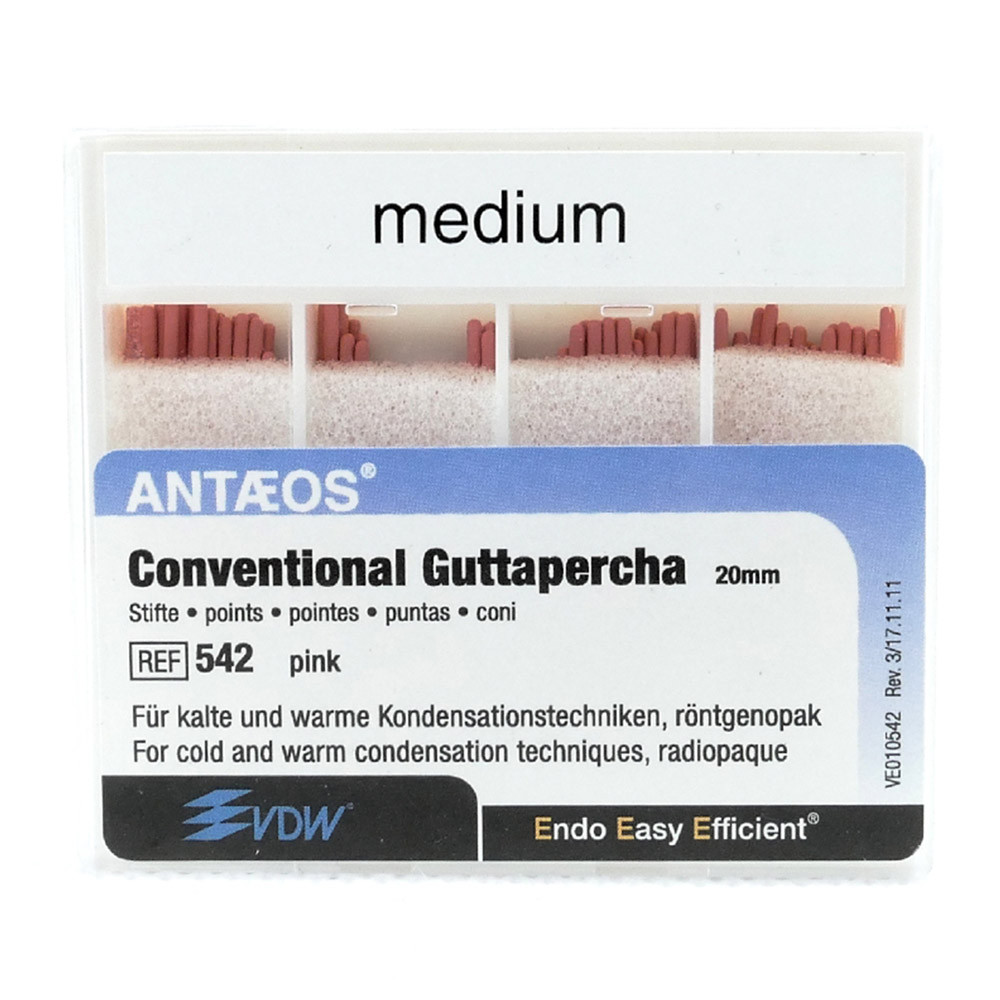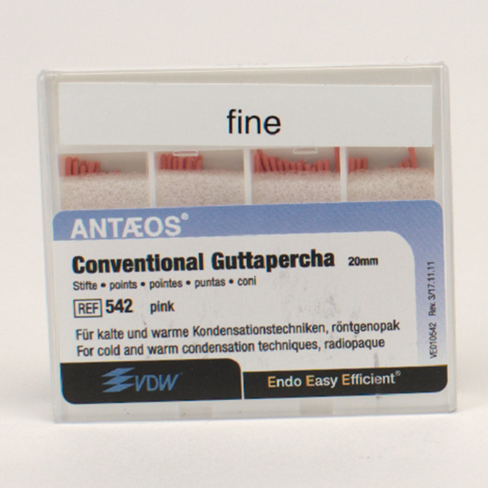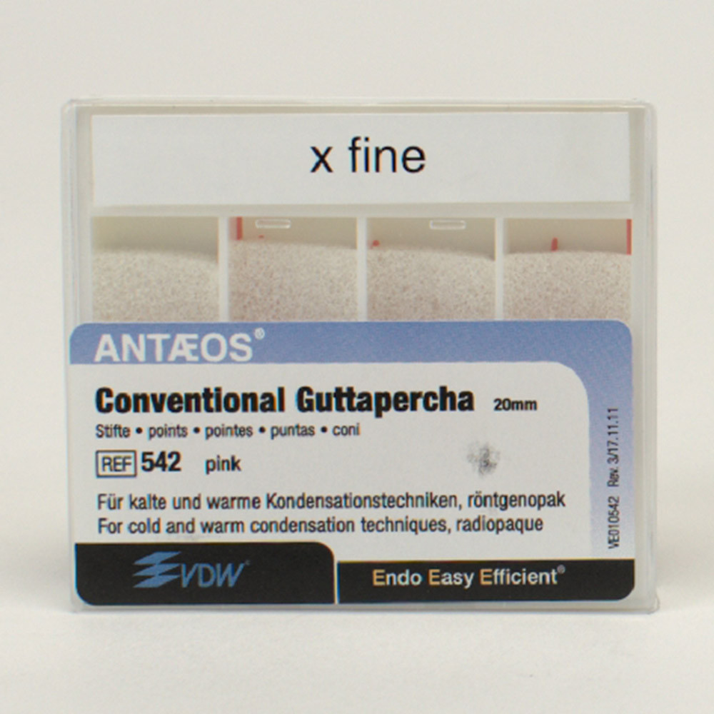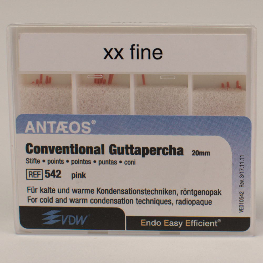 Gutta percha conventioneel – Extra stiften voor de Masterpoint - methode. 20 mm korte stiften in conventionele maten. Afmetingen XXF - L schuifcassette 100 stuks.