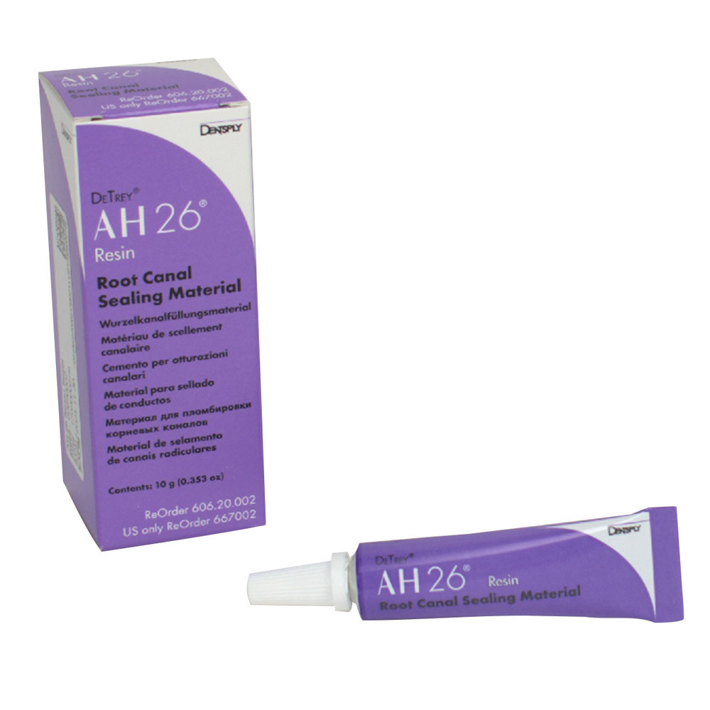 Poeder en kunsthars worden gemengd tot een wortelkanaalvulling met uitstekende afdichtingseigenschappen. Dankzij de nauwe aanpassing aan de wortelkanaalwanden en de extreem lage uithardingskrimp kunnen met AH 26 hermetisch afgesloten wortelkanaalvullingen met een uitstekende weefselcompatibiliteit worden gerealiseerd.