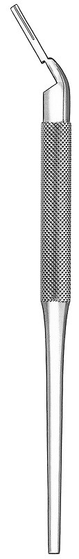 Voor bovensnijtanden en hoektanden. Klein model, met zelfklevend profiel en geruit handvat.
