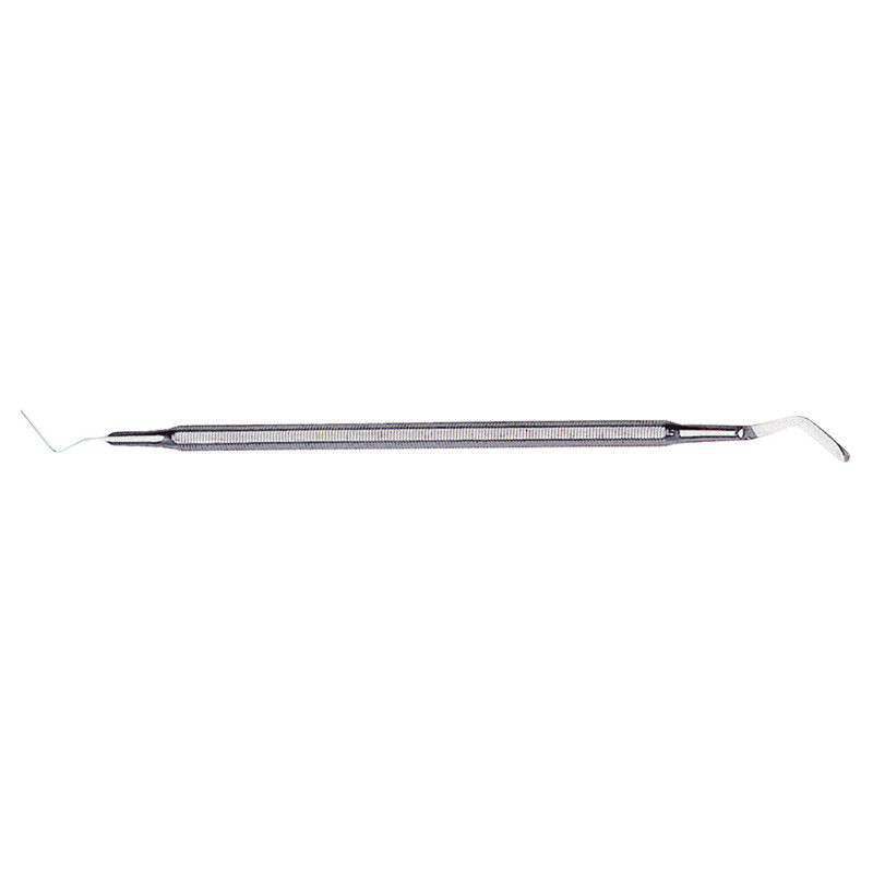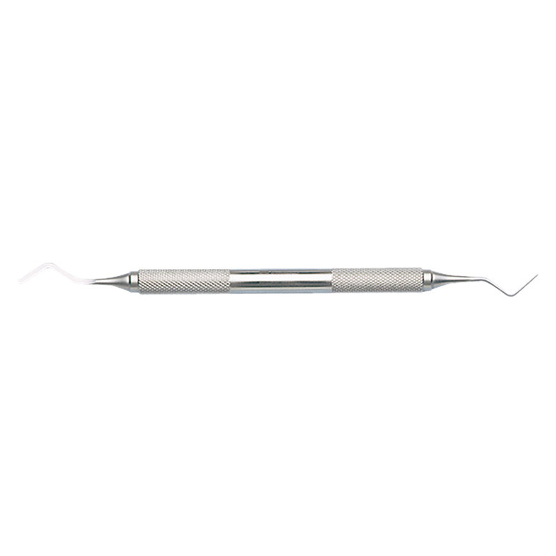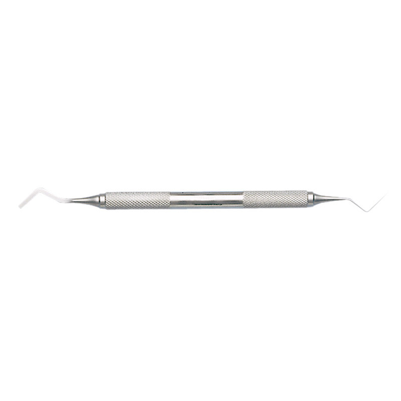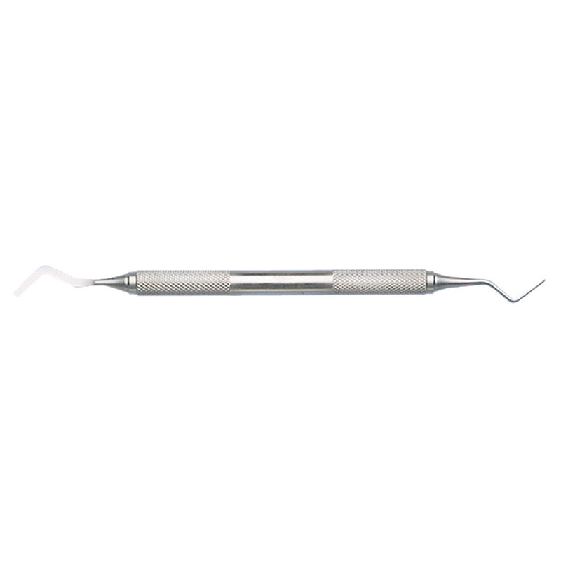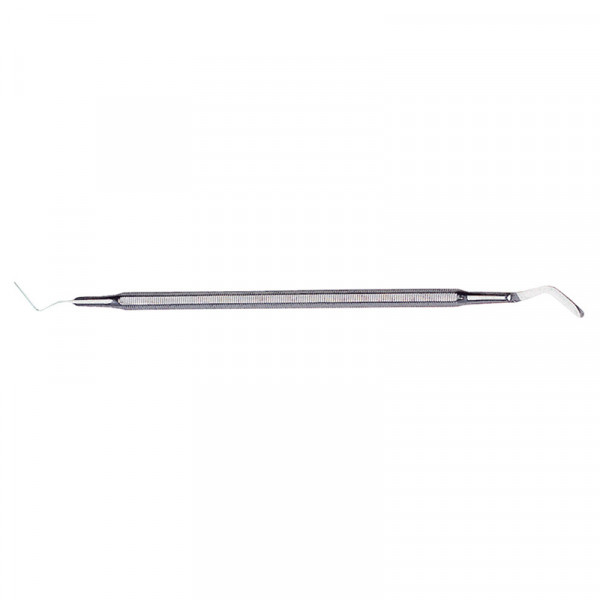 Sonde voor het fijngevoelig aftasten van de tandoppervlakken voor en na subgingivale curettage.
