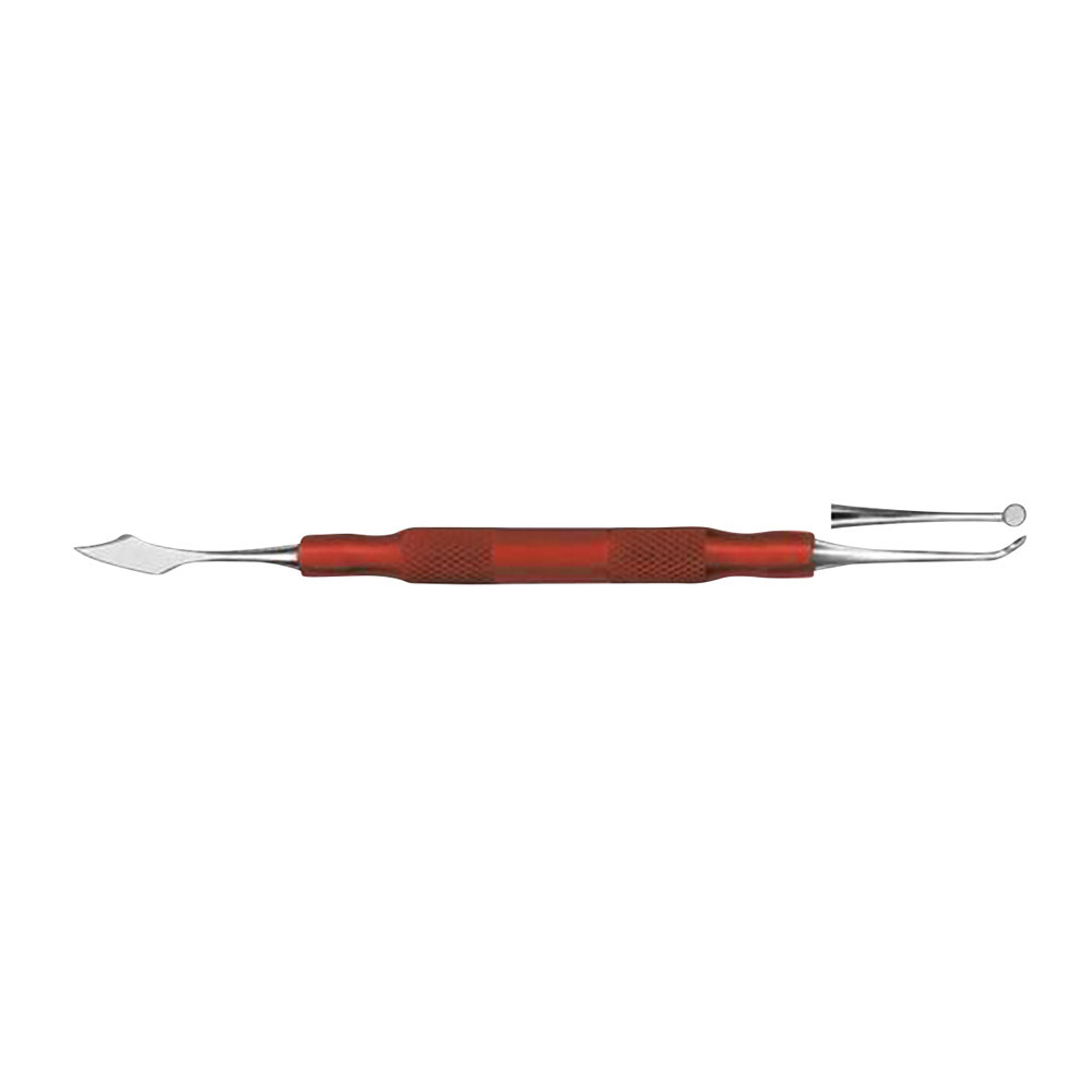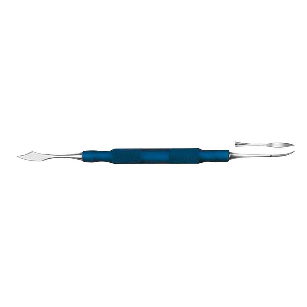 Instrumenten voor het doorsnijden van tandfixerende ligamenten. De zeer vlakke vorm en scherpe zijkanten...