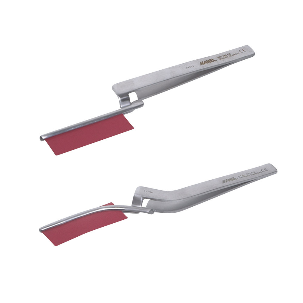 Voor bovensnijtanden en hoektanden. Klein model, met zelfklevend profiel en geruit handvat.