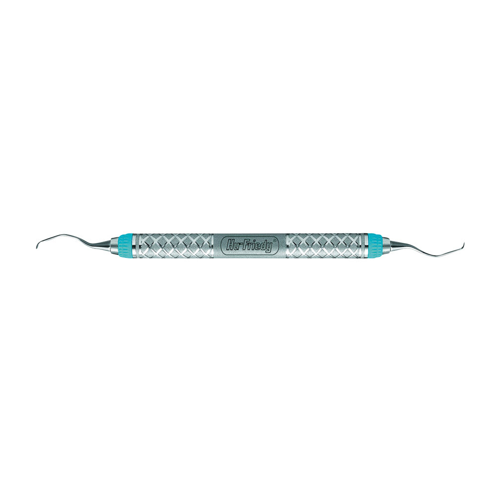 EverEdge 2.0 technologie: de revolutionaire nieuwe roestvrijstalen legering is extreem duurzaam en blijft veel langer scherp. Je hoeft minder vaak bij te slijpen en je handen worden minder snel moe. De Mini-Five curettes voor diepe tandvleeszakken en smalle worteldiameters. Gracey curettes rigid (stijve versie) hebben een sterkere en minder flexibele schacht en worden gebruikt om dikkere aanslag te verwijderen. 1/2 = Licht gehoekt voor anterior tanden 3/4 = Sterker gehoekt voor anterior tanden en premolaren 5/6 = Licht gehoekt voor anterior tanden en premolaren 7/8 = Sterker gehoekt voor premolaren, molaren, aangezichts- en mondoppervlakken 9/10 = Lange, sterk gehoekte 1-schacht, voor alle mond- en aangezichtsoppervlakken van molaren en premolaren 11/12 = Gehoekt voor de mesiale oppervlakken in het molaar- en premolaargebied. 13/14 = Sterk gehoekt voor de distale oppervlakken in het molaar- en premolaargebied 15/16 = Sterk gehoekt zoals mesblad 13/14, maar tegenovergesteld voor de mesiale oppervlakken in het molaar- en premolaargebied 17/18* = Sterker gehoekt, dus uitgebreid gebruik voor distale en posterieure oppervlakken en diepe gingivapockets (* heeft een langere 1-stift en een iets korter mesblad)
