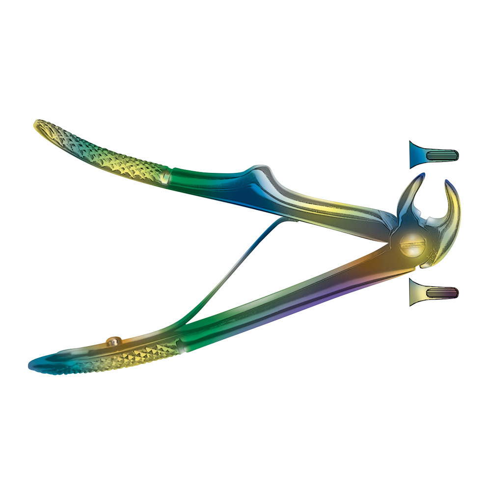 Voor verstandskiezen, onderkaak. Groot model, met plakprofiel en geblokt handvat.