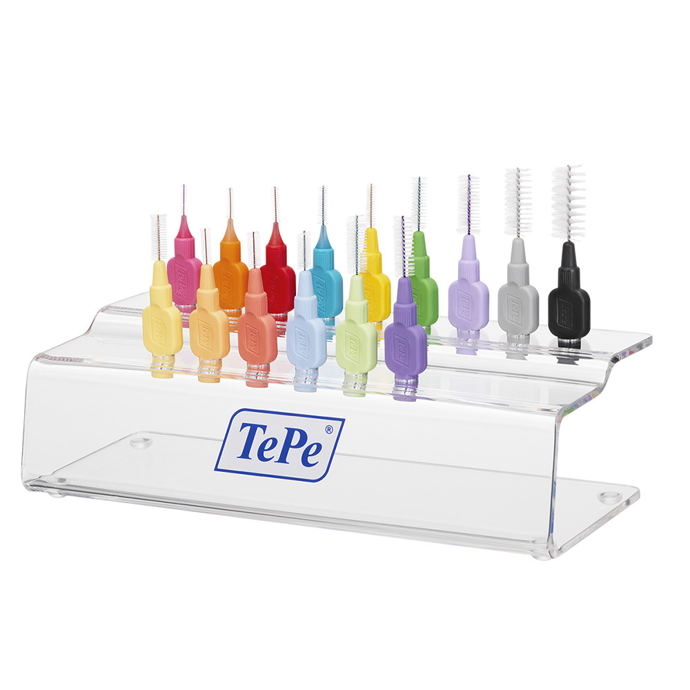 Passend für TePe Interdentalbürsten Original und Extra Soft. Perfekt zum Aufstellen an der Anmeldung, im Behandlungszimmer sowie im Wartezimmer Material: klares Acryl Höhe: 6 cm Breite: 19 cm Tiefe: 8 cm