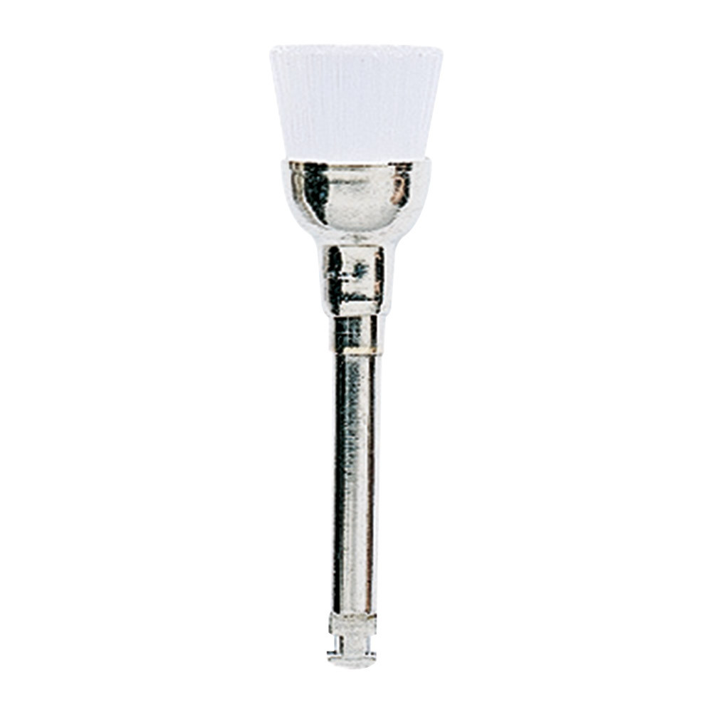 Nylon-Bürsten mit Winkelstückschaft zur Beseitigung von Zahnbelägen, mit Polierpaste auf okklusalen Oberflächen, Höcker und Höckerabhängen. Die flexiblen Nylon-Bürsten erlauben eine Reinigung auch unterhalb des Zahnfleischrandes. Eine Farbcodierung kennzeichnet die unterschiedliche Härte der Nylon-Bürsten: Weiß = standard Bürsten - zum Entfernen von Zahnbelag und zum Polieren Rosa = weiche Bürsten, zum Entfernen von Zahnbelag in Sulkusnähe, zur Schonung des Weichgewebes Gelb = harte Bürsten, zum Entfernen von starkem Zahnbelag und Verfärbungen Einmalanwendung, nicht autoklavierbar