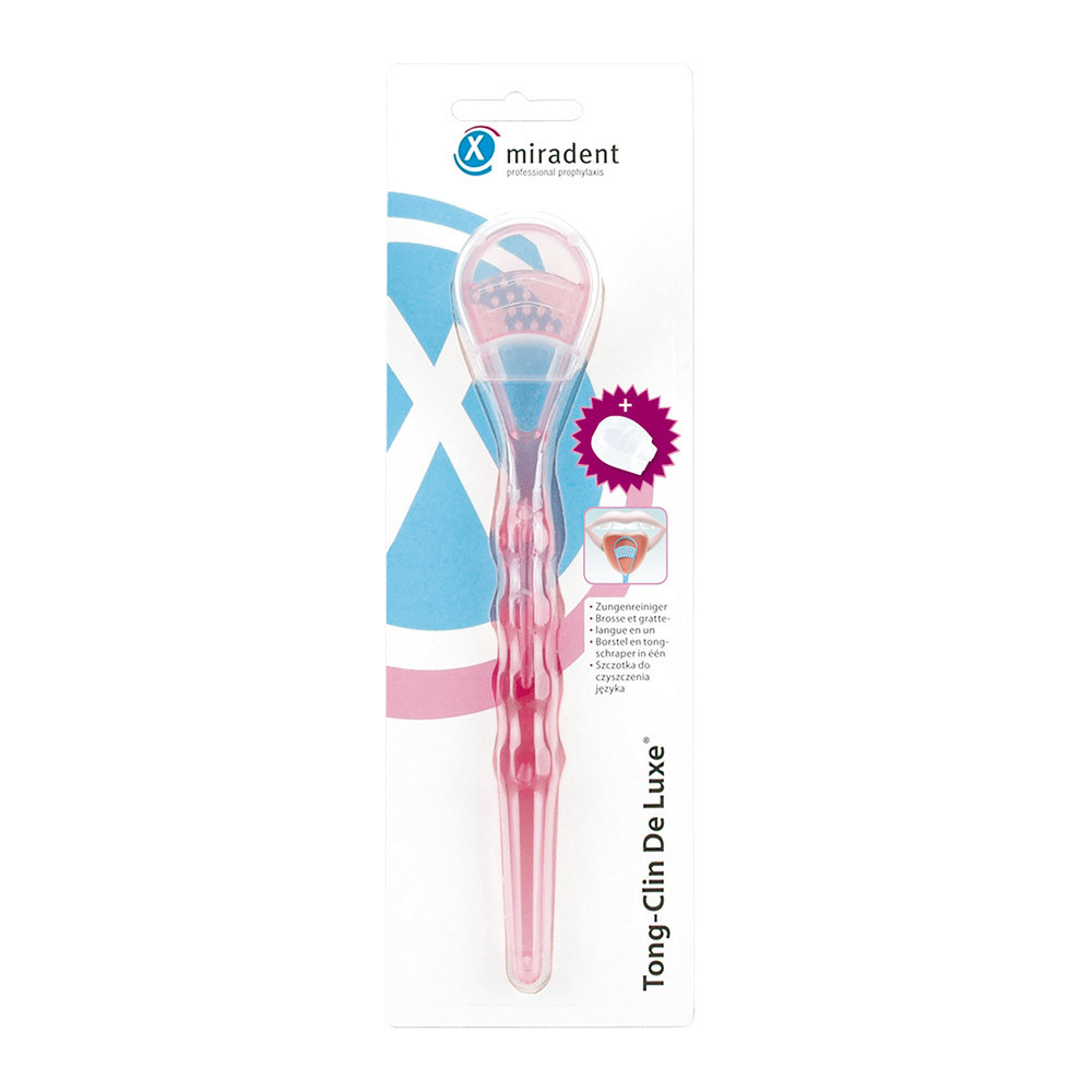 Dubbel instrument voor professionele tongreiniging. Borstel en tongschraper in één. De stevige, korte borstel tilt plak op, zodat de schraper aanslag grondig kan verwijderen. Geleverd met hygiënische beschermdop.