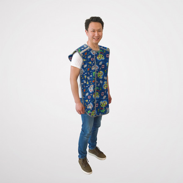 Röntgenschutzschürze für den stehenden Patienten am Panoramagerät. Flexibles Bleigummi-Mehrschichtmaterial auf Naturkautschukbasis. ComforTex-HPMF Außenhülle, rundum eingefasst. Pb-Wert 0,50 mm.