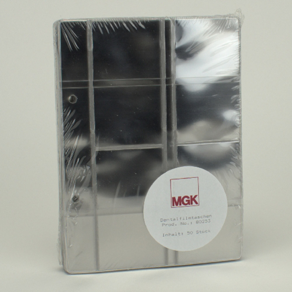 Door de nauwgezette pasvorm van de individuele velden kan de film niet verschuiven of eruit vallen, ook niet als er sterke druk wordt uitgeoefend. Alle zakken hebben een DIN A5-horizontale richting en zijn van filmneutrale harde doorschijnende folie. De opbergzakken hebben een standaardperforatie voor alle opslagsystemen. Deze worden geleverd in uitvoeringen met een gegevensveld voor de overeenkomstige patiëntenkaart.