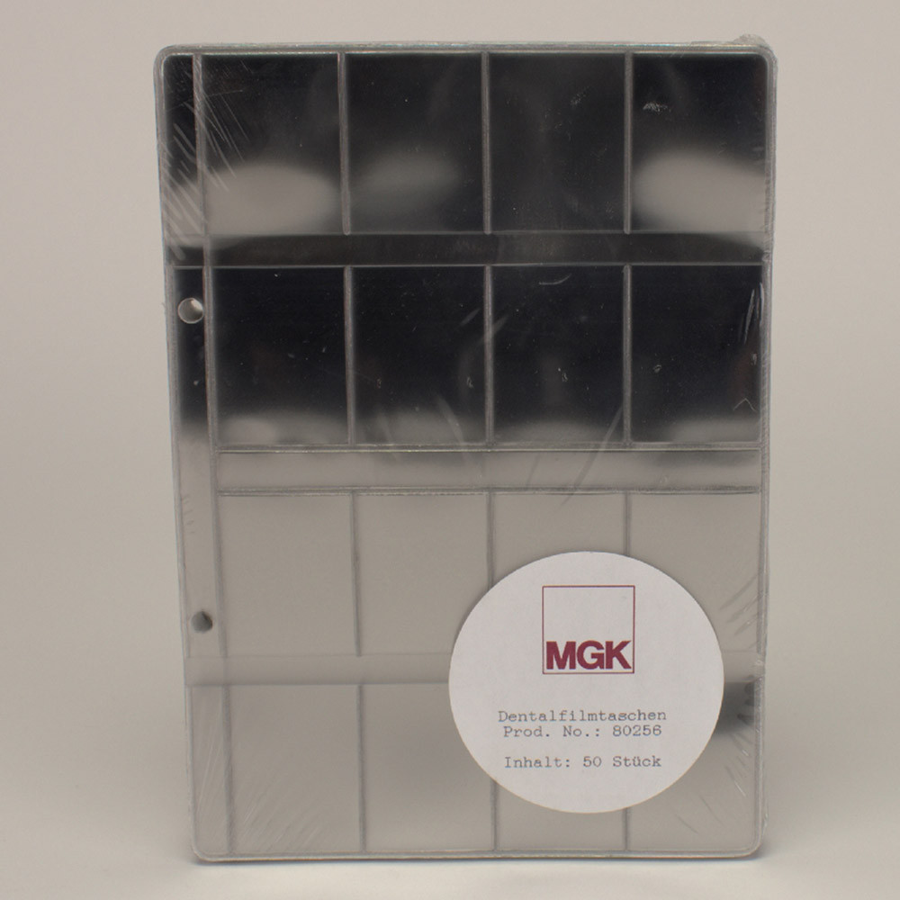 Door de nauwgezette pasvorm van de individuele velden kan de film niet verschuiven of eruit vallen, ook niet als er sterke druk wordt uitgeoefend. Alle zakken hebben een DIN A5-horizontale richting en zijn van filmneutrale harde doorschijnende folie. De opbergzakken hebben een standaardperforatie voor alle opslagsystemen. Deze worden geleverd in uitvoeringen met een gegevensveld voor de overeenkomstige patiëntenkaart.
