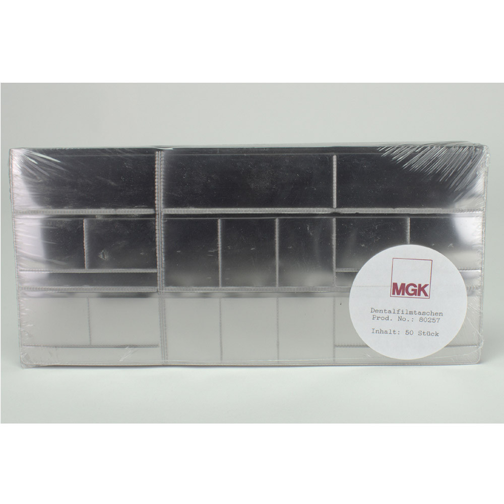 Filmtasche für 14 Zahnfilme 3,0 x 4,0 cm (8x quer/6x hoch), mit Datenfeld, gefaltet passend für DIN A5 quer. Durch die Passgenauigkeit der einzelnen Felder ist ein Verschieben oder Herausfallen des Films auch bei starker Beanspruchung ausgeschlossen. Alle Taschen sind aus filmneutraler Hart-Klarsichtfolie. Dadurch kein statisch bedingtes Verkleben der Folie. Die Ausführungen mit Datenfeld werden mit einer dazu passenden Datenkarte geliefert.