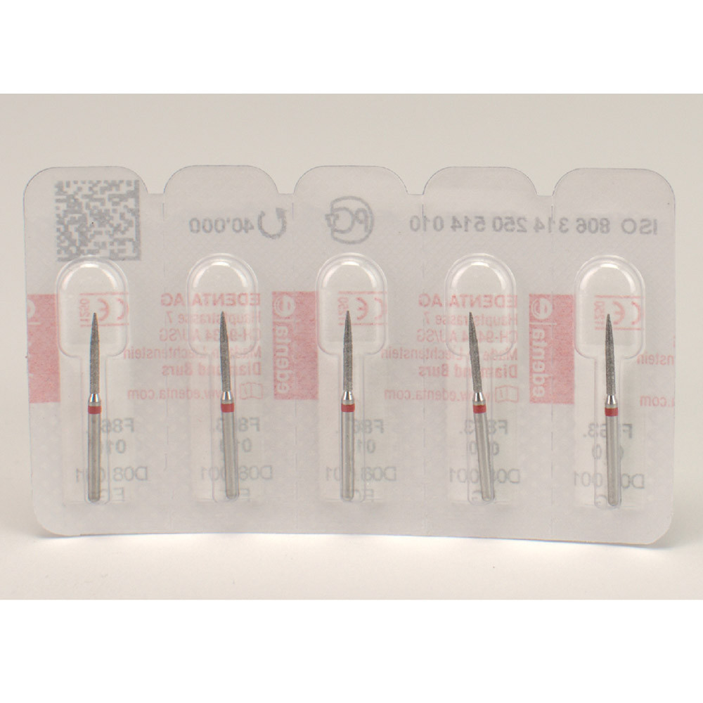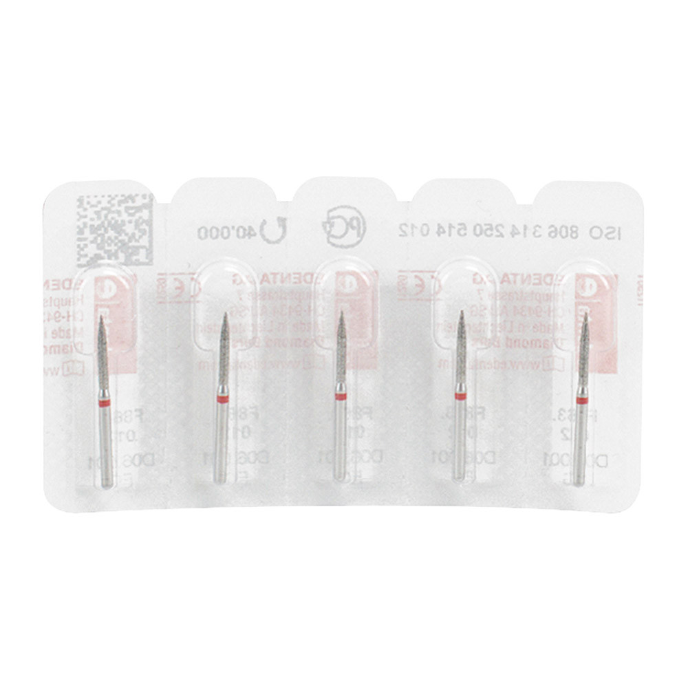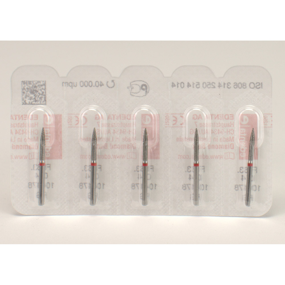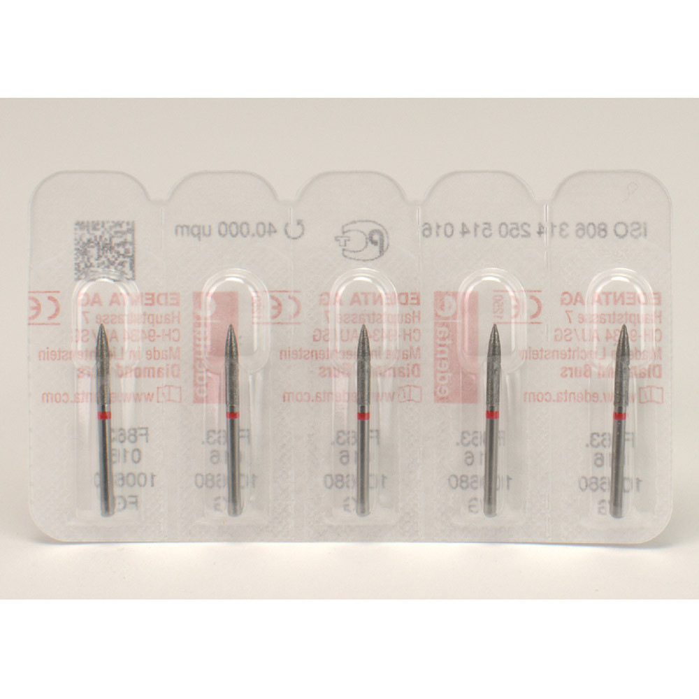 Mit feiner Diamantkörnung zum Abrunden von Approximalflächen, zum Separieren von Keramik.