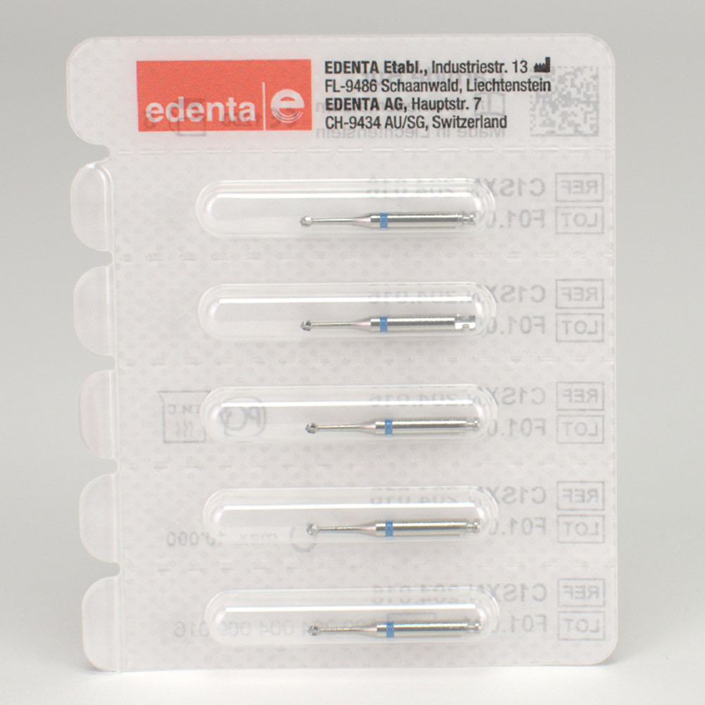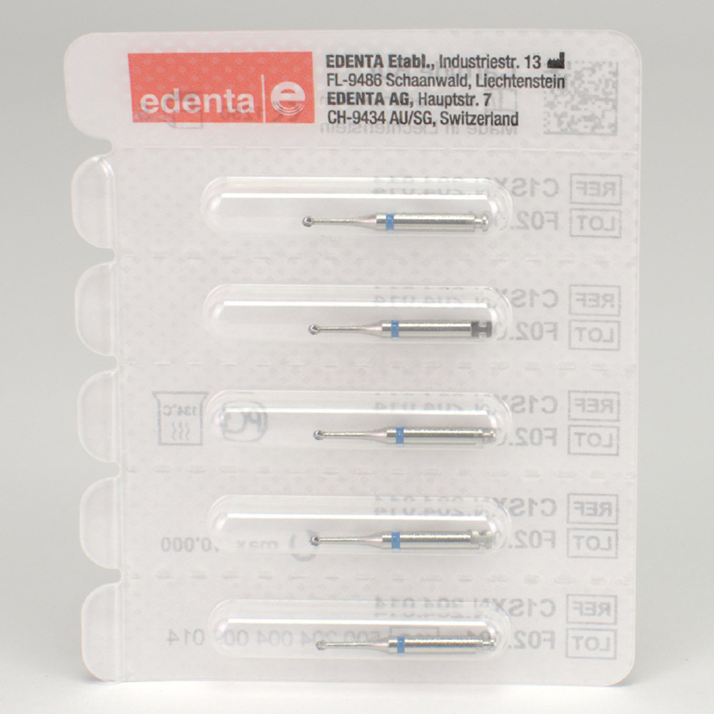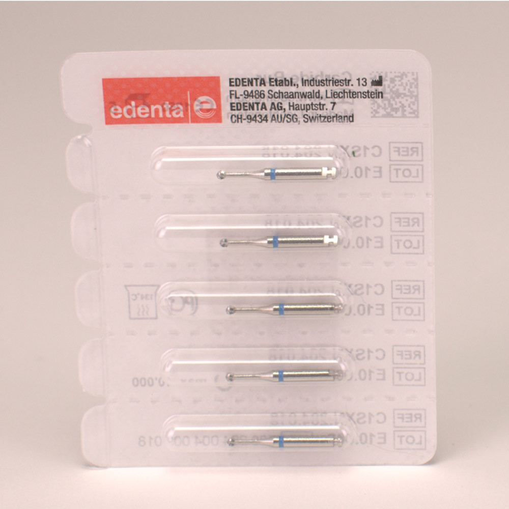 Jede Präparation ist ein zusammenhängender Prozess. Mit dem dafür abgestimmten Instrumentarium von Edenta arbeiten Sie fliessend von einem Arbeitsschritt zum nächsten, mit weniger Instrumentenwechsel und kürzerer Präparationszeit. Schnittfreudige Kreuzverzahnung für vibrationsarme Behandlung und schlanker Halsgeometrie für gute Sicht.