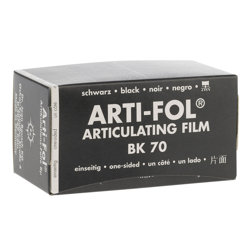 Articulatiefolie gecoat met gekleurde hydrofiele zachte wassen. Dit verbetert de verkleuring op vochtige occlusale oppervlakken aanzienlijk. Voor het herkennen van beginnende contacten.