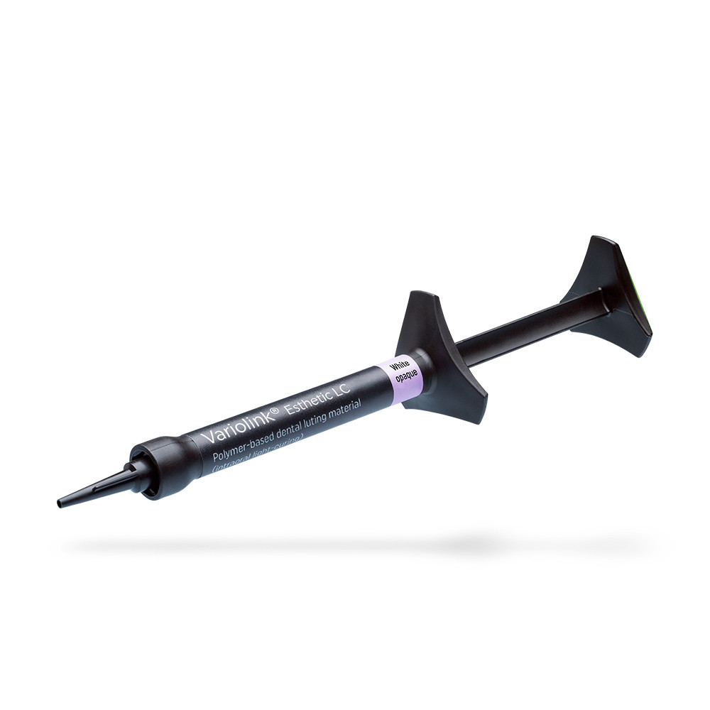 Variolink Esthetic LC ist das ästhetische, lichthärtende Befestigungscomposite zur definitiven Eingliederung von anspruchsvollen Keramik- und Composite-Restaurationen. Es besticht durch seine außergewöhnliche Ästhetik und die sehr anwenderfreundliche Verarbeitung. Zur definitiven Befestigung von Glaskeramik-, Lithiumdisilikat-Keramik- und Compositerestaurationen (Inlays, Onlays und Veneers), sowie nur bei Restaurationen mit geringer Materialstärke < 2 mm und ausreichender Transparenz (z.B. IPS e.max HT) verwenden.