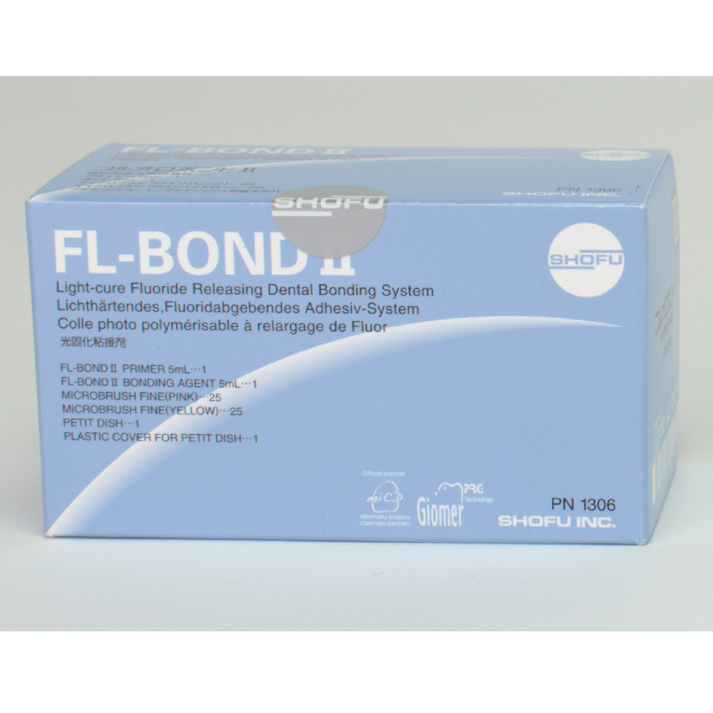 Selbstätzendes, Fluorid abgebendes Bonding-System FL-Bond II ist ein selbstätzendes "Two-step"-Adhäsivsystem mit exzellenten Verbundeigenschaften zu Schmelz und Dentin für den sicheren Randschluss. Das System zeichnet sich durch eine unkomplizierte Anwendung und sehr gute biokompatible Eigenschaften aus. Die moderat fließende Konsistenz von FL-Bond II ermöglicht eine angenehme Applikation und ist bei abfallenden Kavitätenwänden standfest. Dies garantiert eine gleichbleibende Filmstärke an allen Präparationsflächen und sichert einen innigen Haftverbund.