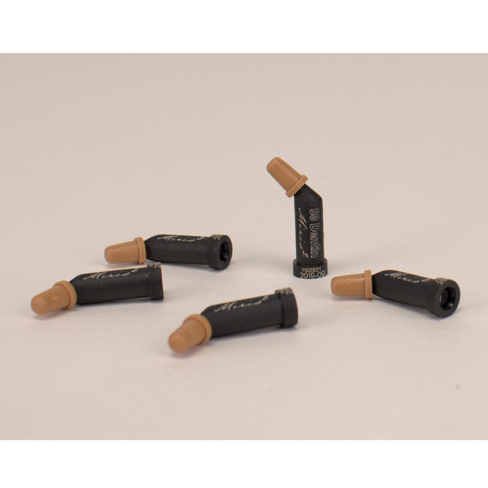 Zelfsnijdend draad.In twee versies: titanium of 24 K verguld. Wordt direct ingeschroefd of ingecementeerd.