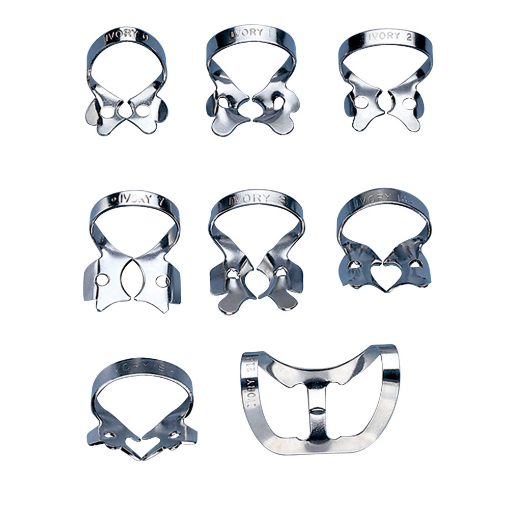 De complete lijn Satin Steel Cofferdamklemmen voor anterieure, premolaire en molaire toepassingen