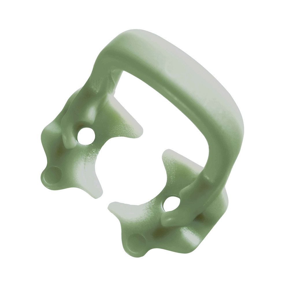 Universele rubberen damklem voor de molaar. Zacht en veilig alternatief voor metalen klemmen. Antisliplaag voor een veilige en stevige grip. Mat beige oppervlak voorkomt ongewenste lichtreflecties. Autoclaveerbaar op 134°C (min. 3 minuten).