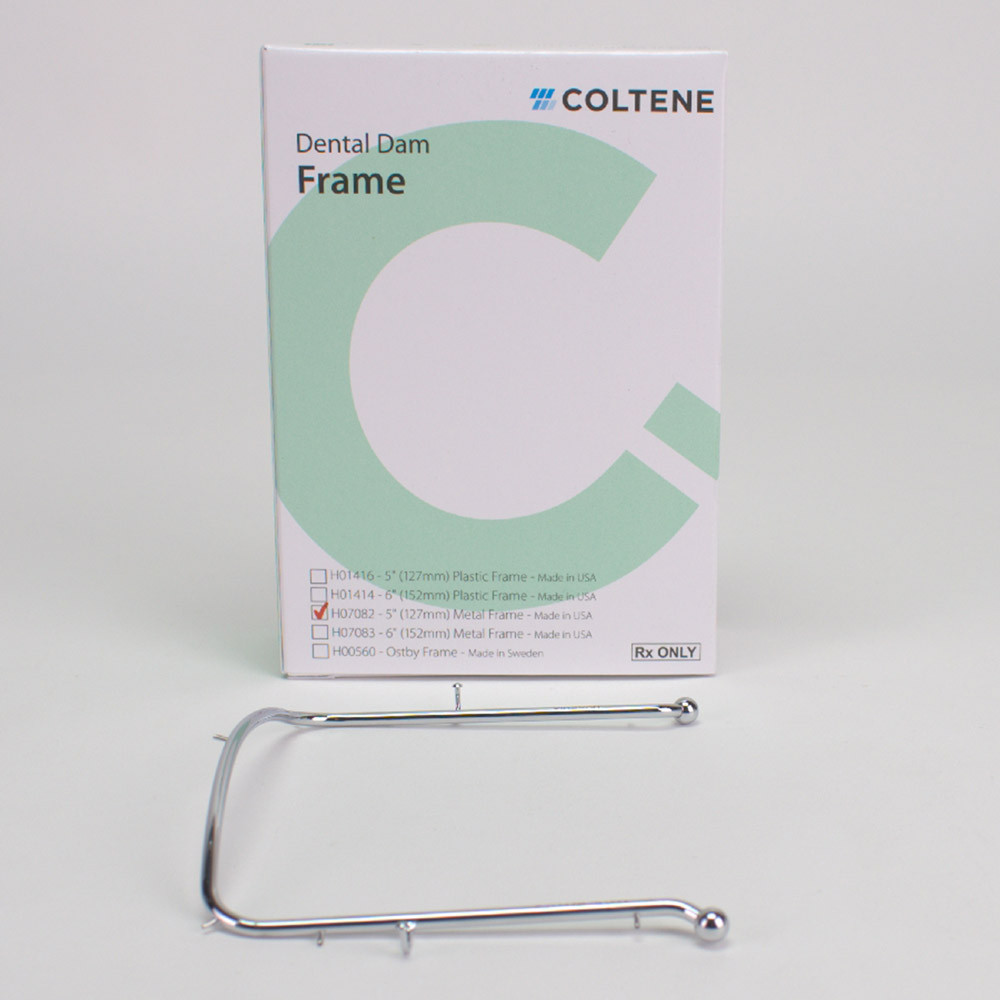 Stabiel frame van rvs. Cofferdam wordt vastgezet zonder perforatie. Autoclaveerbaar.Frame I = 10,9 cm.Frame...