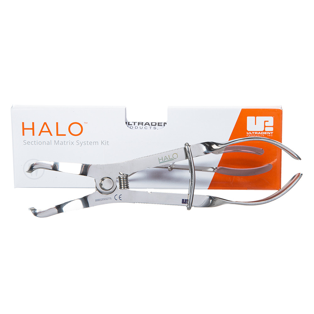 Die Verriegelungsfunktion und die angewinkelten Griffe der Halo Zange sorgen für maximale Stabilität des Halo Rings bei der Platzierung – sowohl mesial als auch distal.