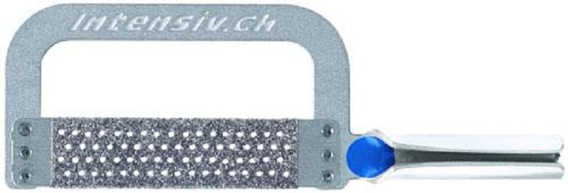 Oscillerende diamantstrips voor interdentale dubbelzijdige glazuurreductie. Groeven en krassen moeten vermeden worden bij het openen van de interdentale ruimte en het reduceren, afwerken en polijsten van het glazuur in de orthodontie. Emailreductie wordt stap voor stap uitgevoerd, met grove tot fijne korrel. Vergeleken met handmatig strippen maakt het Intensive Ortho-Strips systeem een snelle, gecontroleerde glazuurreductie met aansluitend polijsten mogelijk zonder onnodige verwijdering van gezonde tandstructuur.