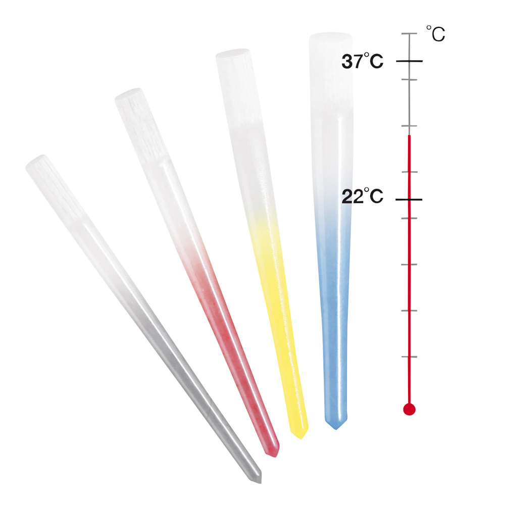 Laserbedruckte Farbmusterstäbchen mit Griffmulde dienen der sicheren Bestimmung der Zahnfarbe. Die...